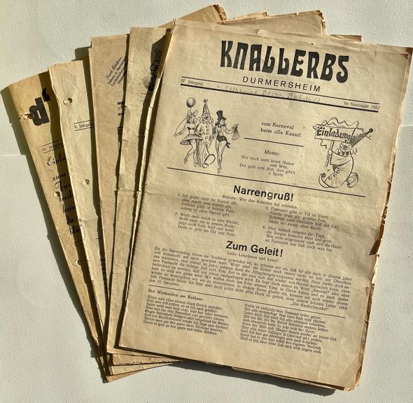 Ein besonderes Augenmerk richten wir hier auf das in Durmersheim damals beliebte Fasenaachds-Bläddl "Knallerbs".